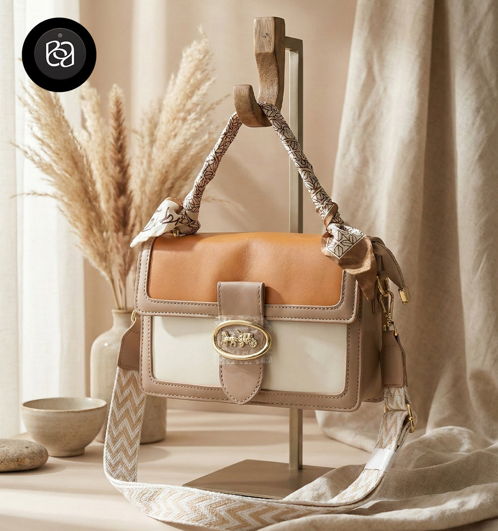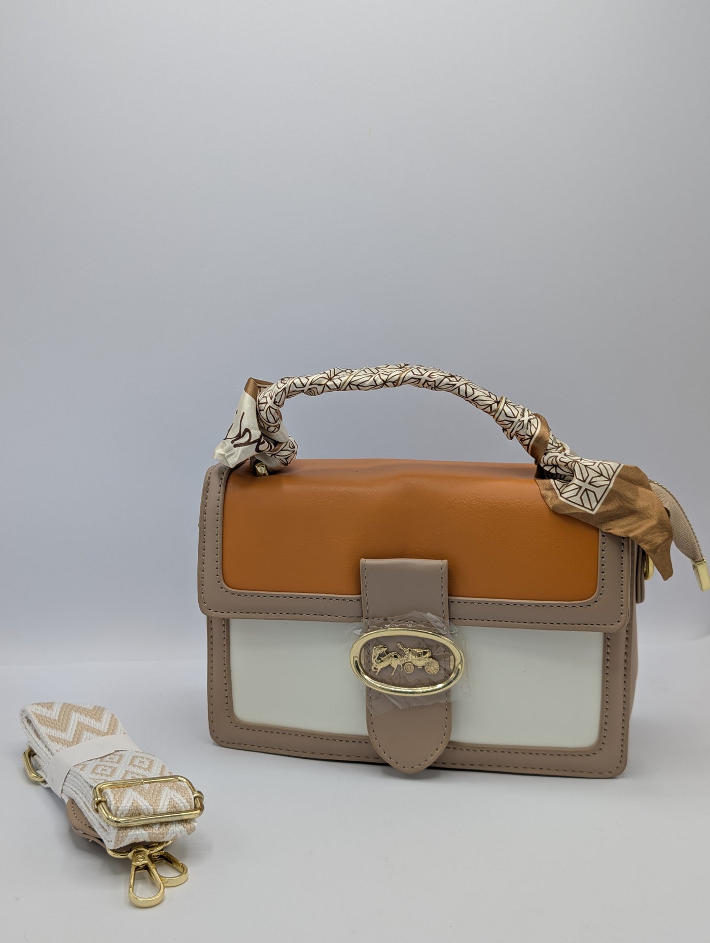 Tri-color design: beige, cream & black