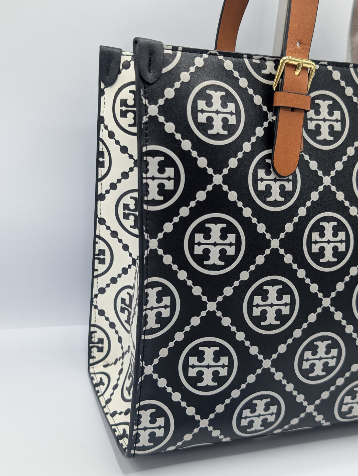 This large tote is part of the T Monogram collection, which features a classic pattern inspired by traditional Pennsylvania Dutch quilting.