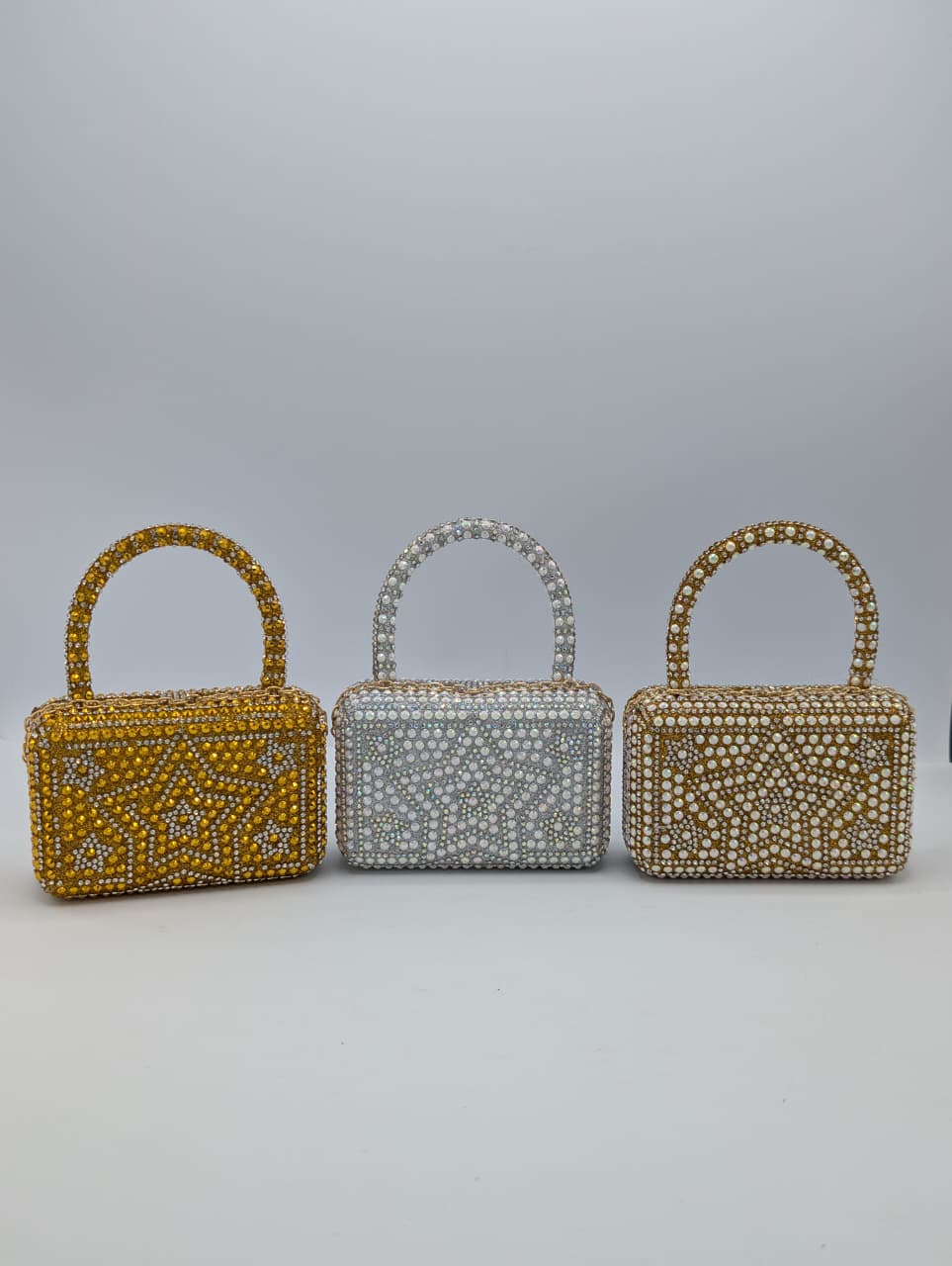Add a touch of sparkle to your look with our elegant Star Handle Bag. Beautifully designed with shiny stones and a stylish star pattern, this bag is perfect for weddings, parties, and festive occasions. Compact yet spacious enough for your essentials, it comes with a strong handle for a comfortable grip. A perfect statement piece to complete your outfit ✨